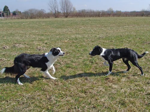Not much new to write about, we're still doing lots of tricks and only did that much of agility as you can see in a video. That's how our turns after dog-walk look now (after months of not working on it at all...). As you can see, I'm not using a pole anymore, I forgot to take it from the car and then just tried without and it didn't make any difference. As expected, fading a pole was easy. Now that I'm running a full dog-walk with Bi, the problem with slowing down too much on a down-ramp when expecting a turn is gone too - BUT the turns got much bigger. But I don't really care, I actually prefer Bi's faster-but-wider way over Bu's tight-but-slower way - you can see the difference in a video. I still plan to do some additional work with both of them, I only did that video as I was taping it anyway for my own information and because, well, I still didn't do that tricks video that I promised... But we're getting nearer to that video too!:)