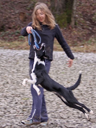 3. manners I'm afraid my wild pup will need to learn some manners afterall. The first rule we set is that we do not attack Bu when excited. She finds that one extremely hard and breaks it any time she can... Yeah, as I said, I'm terrible when it comes to teaching manners... Another rule is that we do not jump on table. She thought it's really fancy when she managed to jump from the floor straight on the table one day, but is now pretty good at staying off - BUT we still need some work to do about stealing from the table, she still does that... I guess it has something to do with the fact that I find it really funny when she steals something and is then so proud of herself to do a victory dance with it in her mouth, throwing her legs everywhere, with her ears flying all around, she is just sooo funny, I need to get it on camera once! And the third rule is that not everybody is our best friend, so there is no real need to jump into the face of everybody we meet. She still does it at home and on our agility field, but it's much better on walks now. It's really cute, but somewhat dangerous as she already crashed into people's heads - and once she even overjumped a friend that bend down to say hello. Yeah, she prefers to jump up to say hello:).