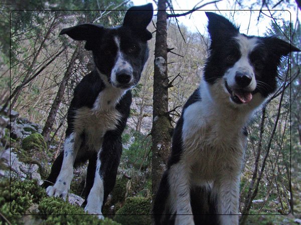 And Bi, well, she is still bugging Bu all the time. She is not all that brave around other dogs, though, look how sad she is, having to pose for a photo with her half-brother Tip (thanks to Andraz for the photo!):
