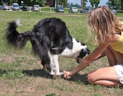 By now, I teach my dogs everything they need to know via tricks: tricks train them to think, to use their body and mind. Tricks teach them that there is no difference between working and playing and gives them the right attitude. Teaching tricks teaches them that they’re the smartest dogs in the world, that there are no mistakes and no failure, that trying things is good. Tricks give them confidence in their thinking abilities and moves. Tricks build a bond between me and them and creates a deeper understanding for them how I think and for me how they think. Tricks make them feel important, smart, confident, needed and bonded with me.